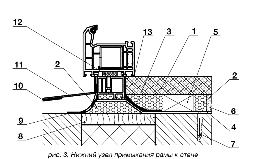 12 – изоляционная саморасширяющаяся паропроницаемая лента (ПСУЛ);