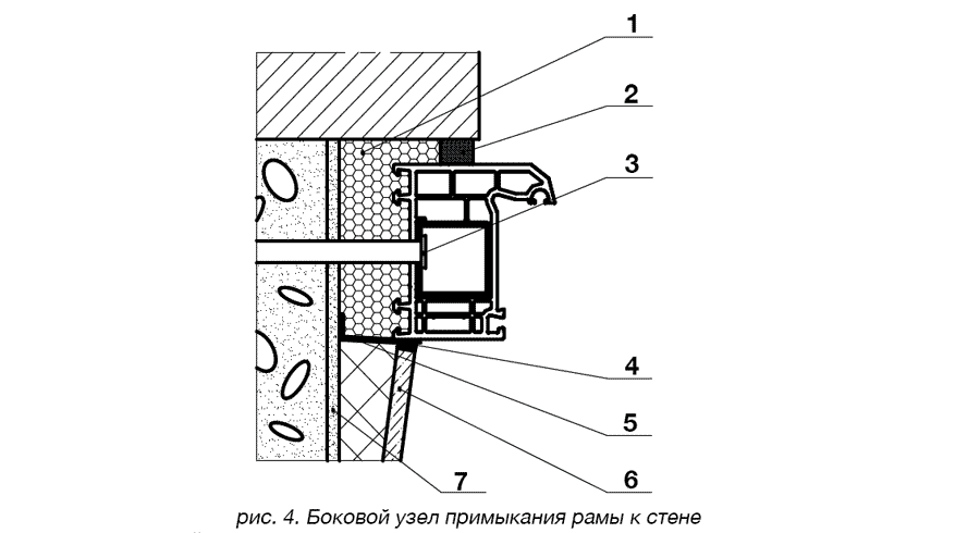 7 – штукатурный выравнивающий слой внутреннего откоса.