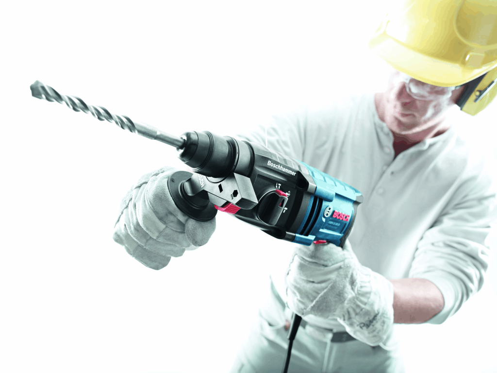- Срок службы. В перфораторе внутренние детали благодаря пневматическому механизму защищены от ударных нагрузок и вибрации во время работы инструмента. Кроме того, в приборе установлена защитная муфта, которая ограждает его от поломок, если бур застрял в отверстии или наткнулся на арматурную сетку в бетоне.