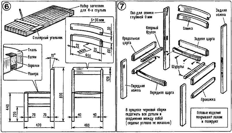 Все бруски для изготовления этой вещи имеют одинаковое сечение. В классическом варианте сечение имеет размеры 45х33 мм. Это ориентировочный размер, пришедший к нам как прототип из английской системы мер путем перевода дюймов в миллиметры. Совершенно не обязательно выпиливать бруски именно такой толщины. Достаточно взять бруски близкие по размеру.
